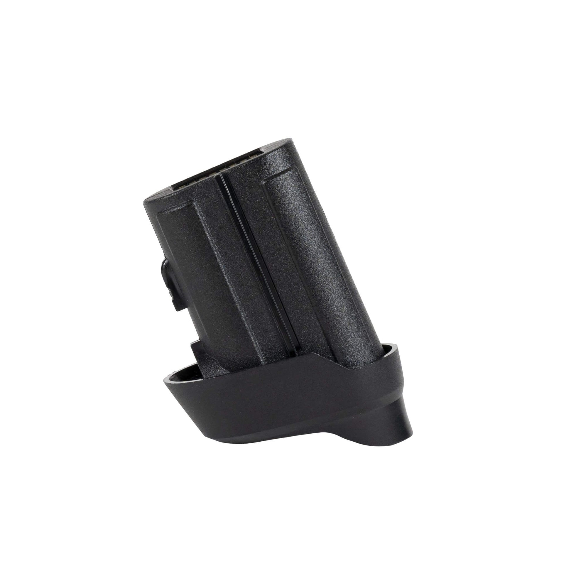 The TASER Performance Power Magazine is a lithium energy cell power supply system. It has an extension to provide a larger grip, but it does not hold an extra cartridge.